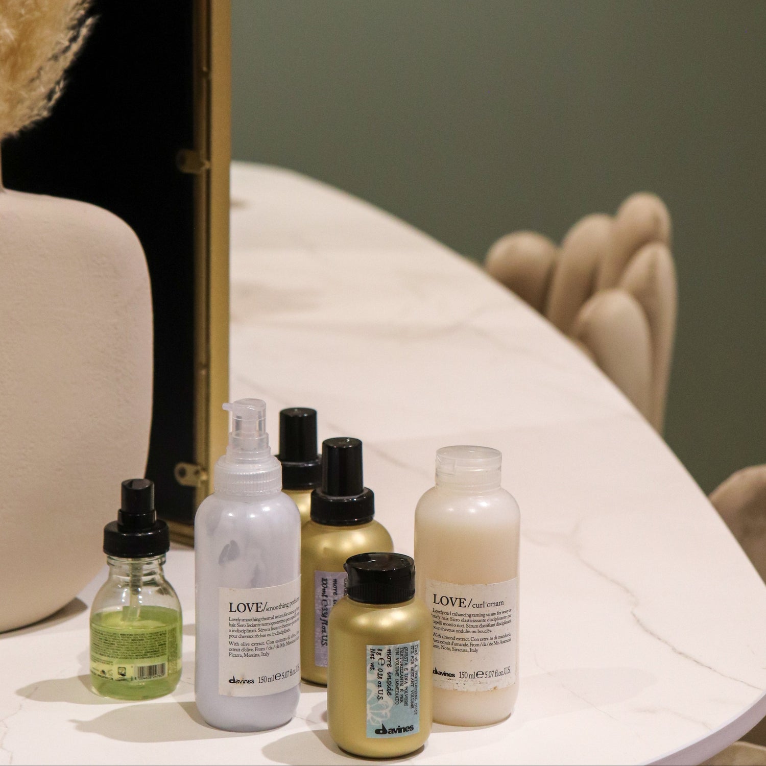 Notre gamme de produits a été soigneusement sélectionnée pour allier performance, naturalité et respect du cheveu. Formulés avec des ingrédients de haute qualité, nos soins offrent des résultats visibles tout en protégeant votre chevelure. Offrez à vos cheveux ce qu’il y a de mieux et prolongez chez vous l’expérience d’exception de notre maison de coiffure.